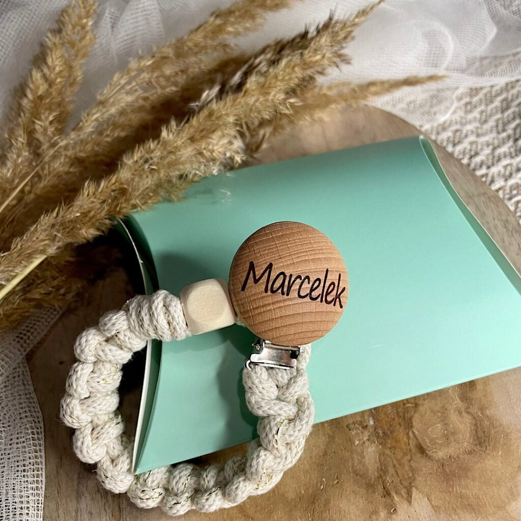 Odkryj wyjątkowe zawieszki do smoczka z imieniem, wykonane ręcznie z najwyższej jakości 100% bawełny. Nasze zawieszki nie tylko ułatwiają utrzymanie smoczka przy dziecku, ale również dodają osobistego uroku. Każda z nich jest starannie wykonana, zapewniając trwałość i bezpieczeństwo dla maluszka. Spraw, aby opieka nad dzieckiem była jeszcze bardziej wyjątkowa – wybierz zawieszkę z imieniem teraz!