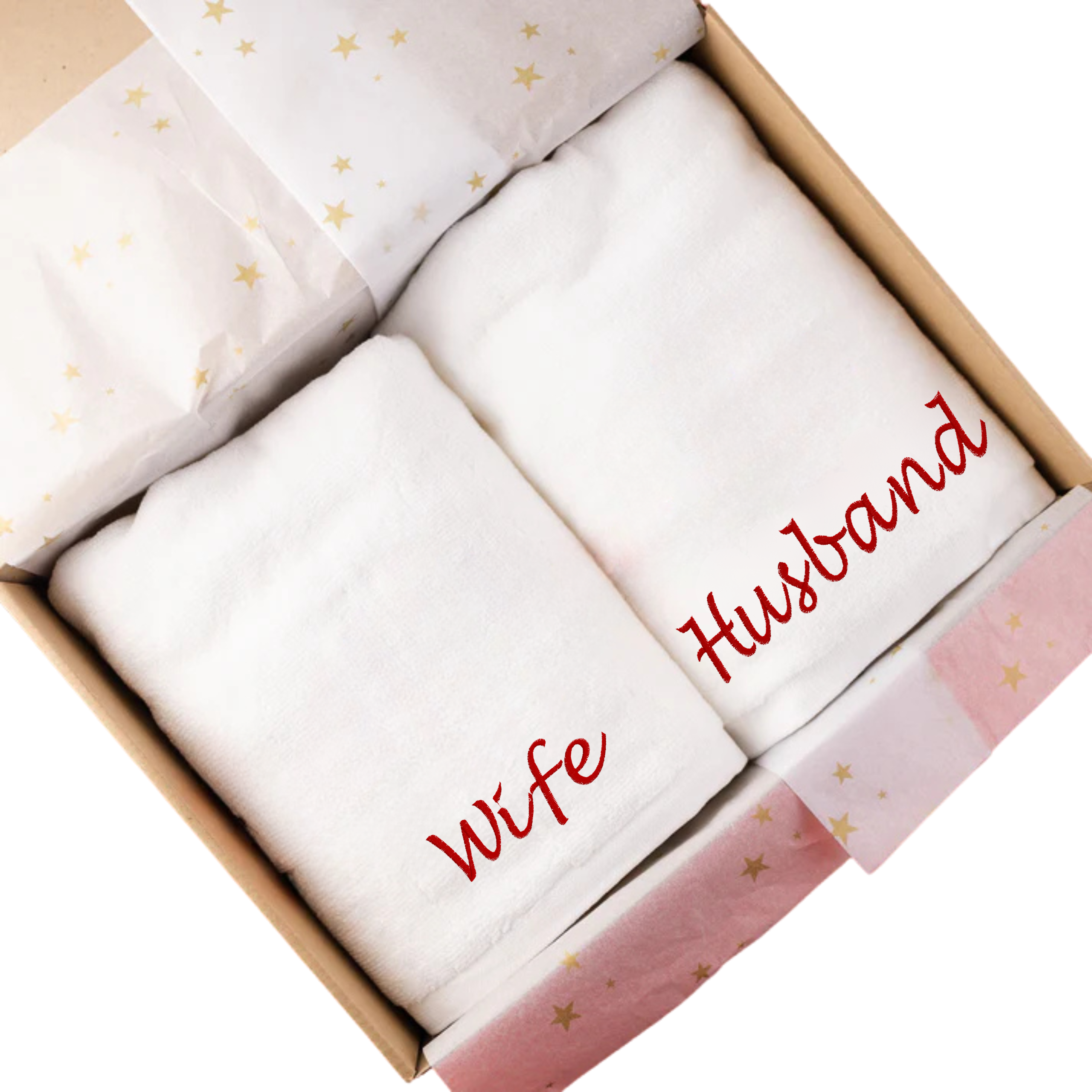 ⭐️Zestaw ręczników z haftem WIFE HUSBAND – idealny prezent⭐️