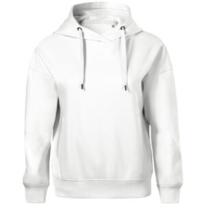 Terry, czesana strona wewnętrzna, 80 % bawełna, 20 % poliester (kolor 12 kompozycja może się różnić – 75 % bawełna, 25 % wiskoza) bez etykiety – gotowy do rebrandingu, luźny krój ze szwami bocznymi, kaptur z podszewką ściągany za pomocą sznurka, etykieta na lamówce z tyłu w neutralnym rozmiarze, wewnętrzna tylna część lamówki wzmocniona kolorową taśmą z materiału wierzchniego, przedłużona linia ramion, wszyte kieszenie typu kangurka, dolny ściągacz i mankiety rękawów z dzianiny ściągaczowej 2:2 z dodatkiem 5 % elastanu, czesana strona wewnętrzna