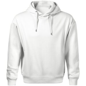 Terry, czesana strona wewnętrzna, 80 % bawełna, 20 % poliester (kolor 12 kompozycja może się różnić – 75 % bawełna, 25 % wiskoza) bez etykiety – gotowy do rebrandingu, luźny krój ze szwami bocznymi, kaptur z podszewką ściągany za pomocą sznurka, etykieta na lamówce z tyłu w neutralnym rozmiarze, wewnętrzna tylna część lamówki wzmocniona kolorową taśmą z materiału wierzchniego, przedłużona linia ramion, wszyte kieszenie typu kangurka, dolny ściągacz i mankiety rękawów z dzianiny ściągaczowej 2:2 z dodatkiem 5 % elastanu, czesana strona wewnętrzna
