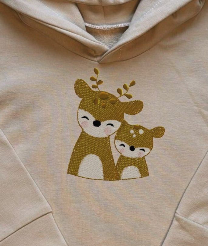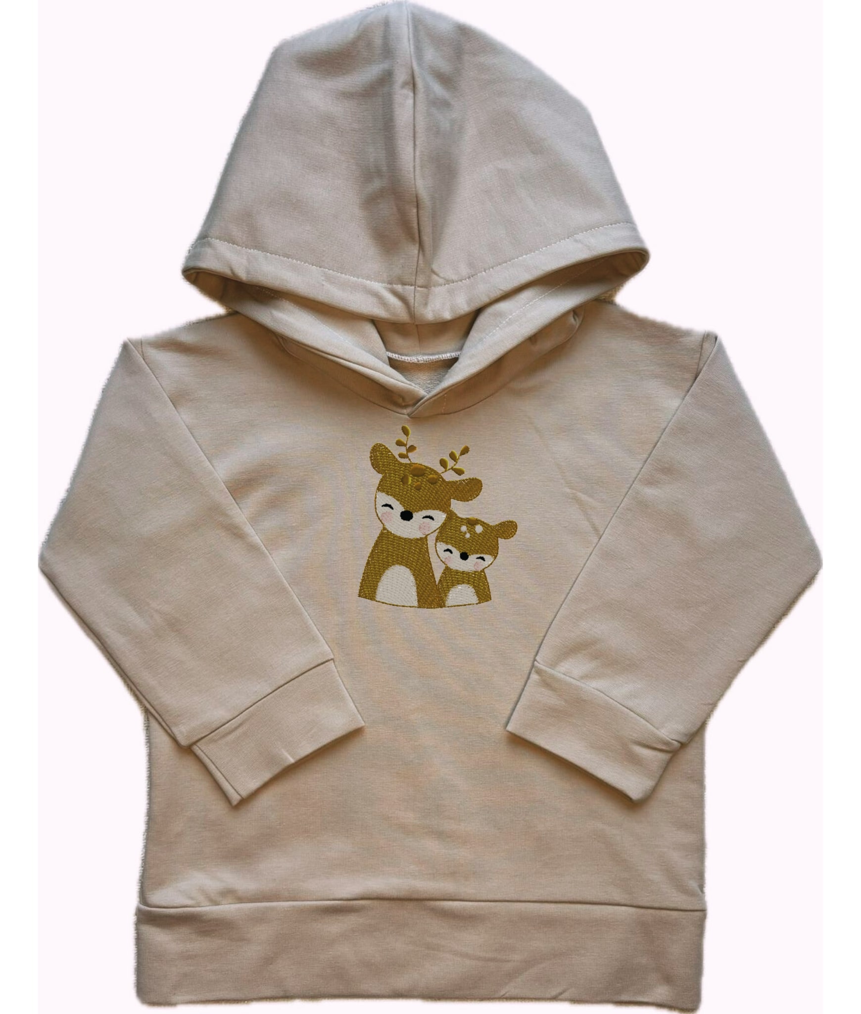 Prezentujemy niezwykle uroczą bluzę dziecięcą w modnym kolorze jasnego beżu. Ozdobiona jest starannie wykonanym haftem z motywem sarenek, co nadaje jej unikalnego charakteru. To nie zwykły nadruk – haft na bluzie gwarantuje trwałość i elegancję na długie lata.