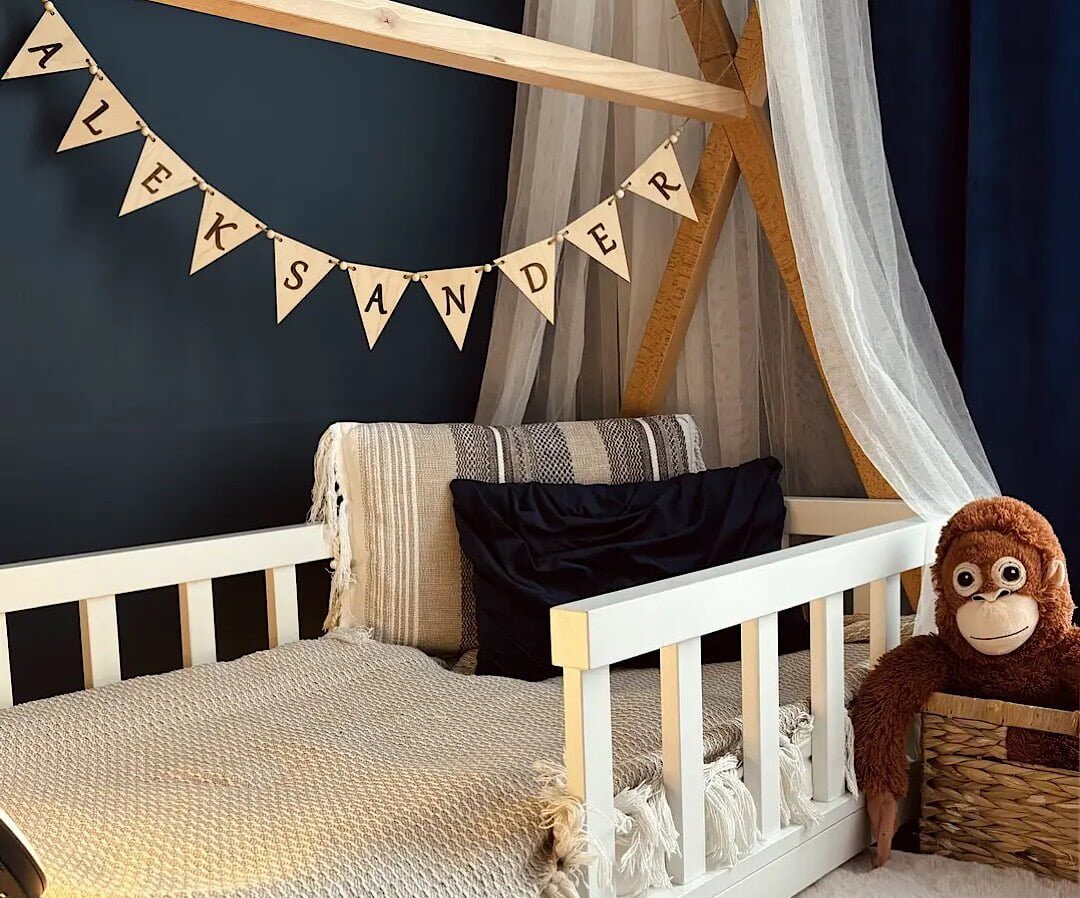 Drewniane proporczyki są ozdobione wygrawerowanymi literkami, umożliwiając spersonalizowanie girlandy imieniem dziecka, inspirującym napisem lub motywującym przesłaniem. Dzięki temu produktowi, dziecięcy pokój stanie się niepowtarzalnym miejscem, w którym każdy detal opowiada swoją historię.