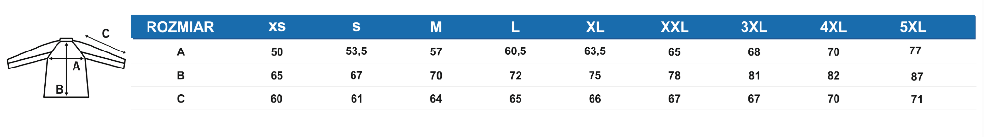 | Rozmiar | XS, S, M, L, XL, XXL, 3XL, 4XL, 5XL |