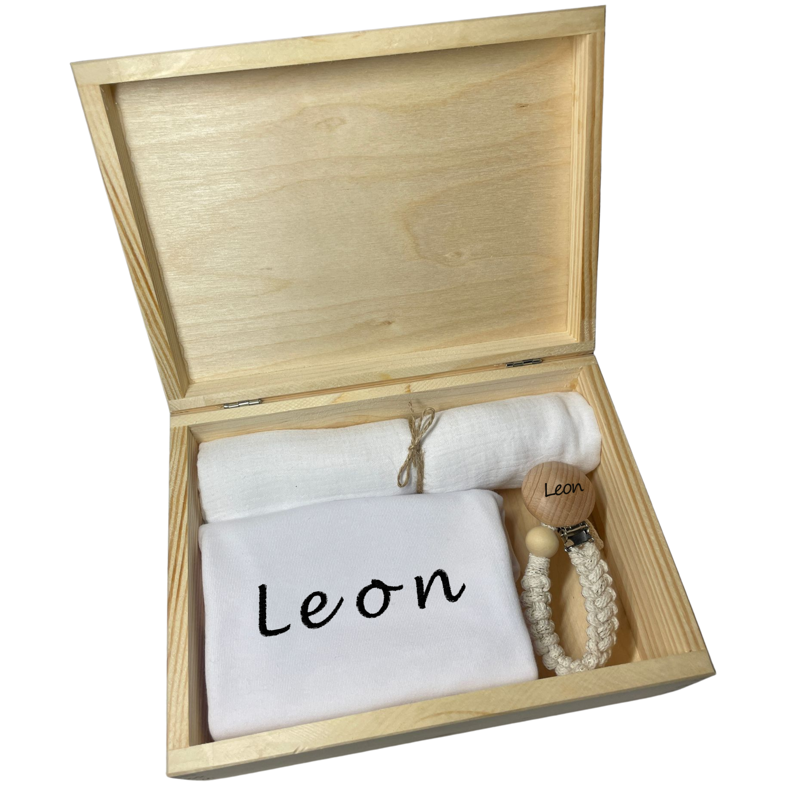 ✔️Drewniane pudełko z wygrawerowanym imieniem dziecka ( Wymiary pudełka: 22 x 16 x 8 cm).