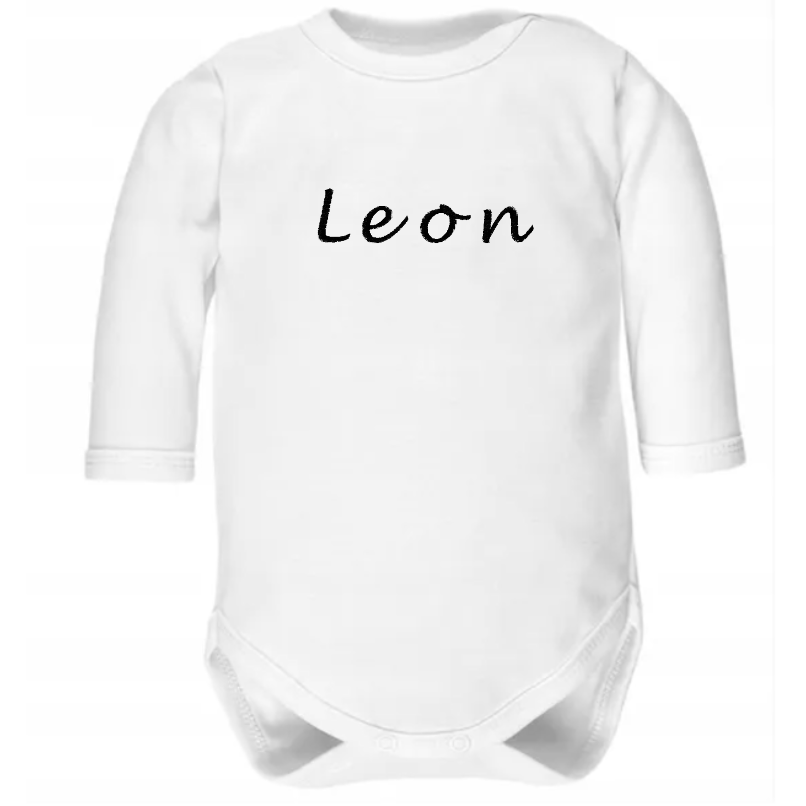 ✔️Body niemowlęce z długim rękawem w kolorze białym z wyhaftowanym imieniem dziecka ( 100% bawełna, polski produkt)