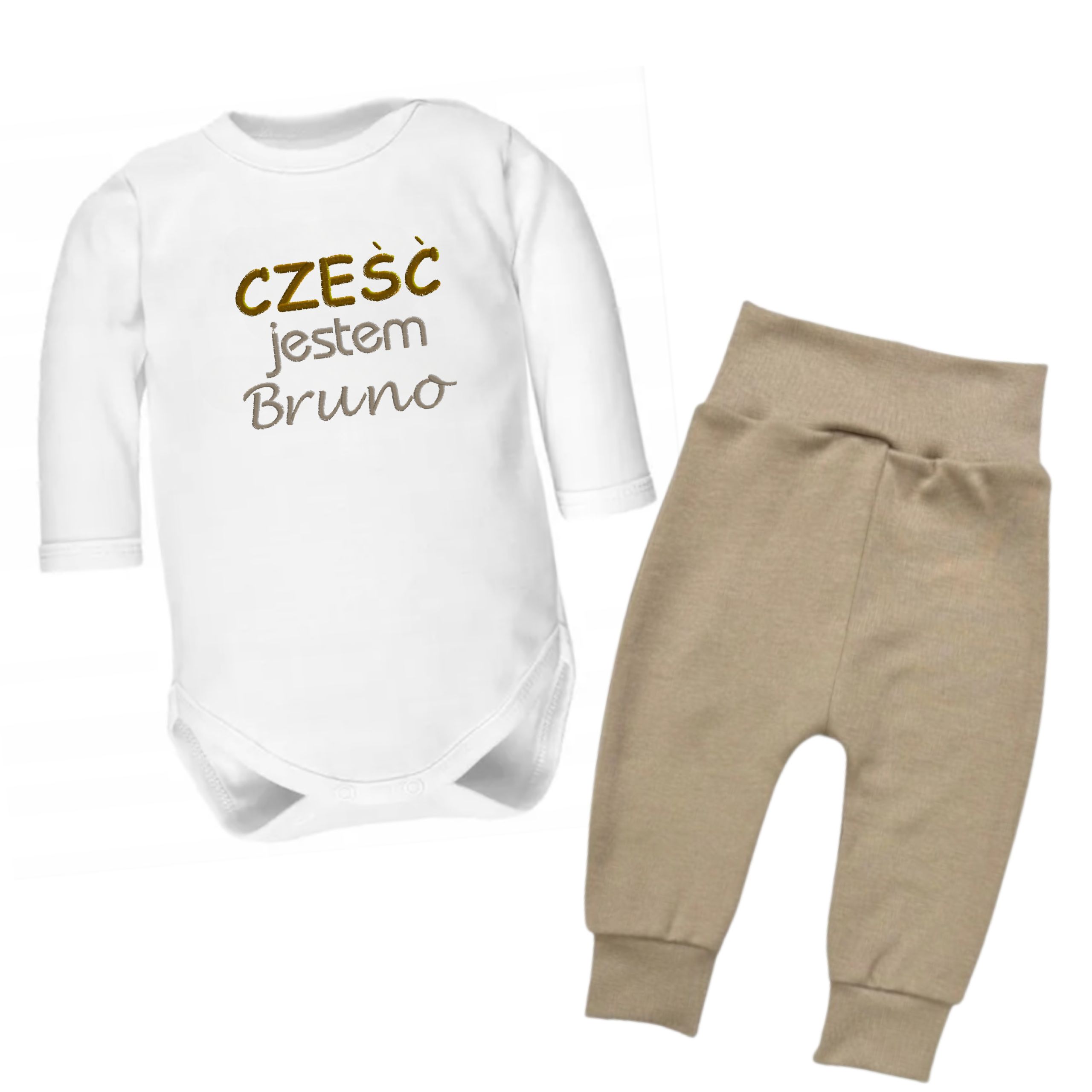Uroczy komplet niemowlęcy z personalizowanym haftem, idealny na prezent lub pierwszą stylizację Twojego maluszka!