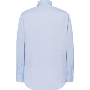 Koszula robocza męska z długim rękawem z przednią kieszenią i guzikami przy kołnierzyku.