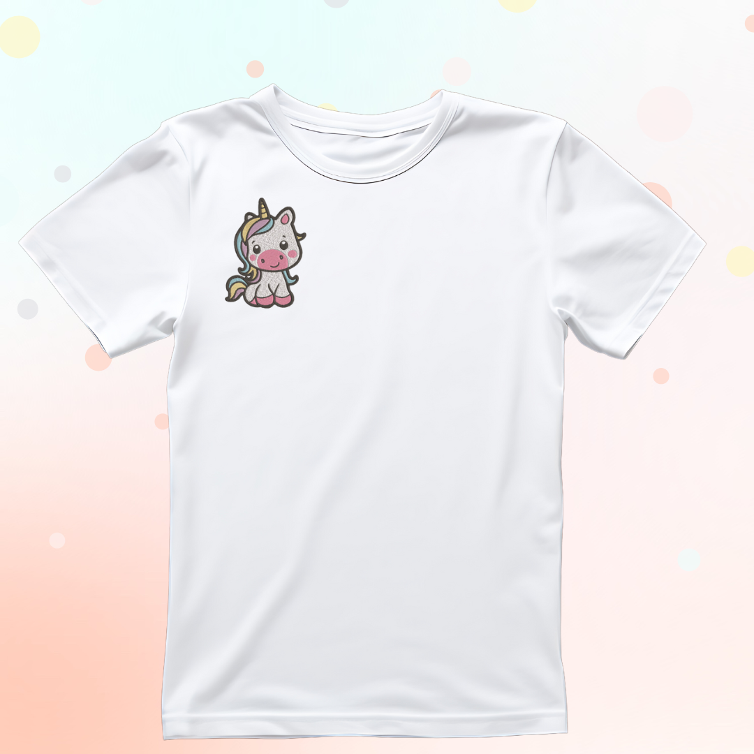 Rozświetl garderobę swojej małej księżniczki – koszulka dla dziewczynki z wyhaftowanym motywem jednorożca! Ten magiczny wzór, wykonany z dbałością o każdy detal, dodaje ubraniu niezwykłego uroku i elegancji. Precyzyjny haft zapewnia trwałość i estetykę, która wyróżnia się na tle zwykłych nadruków. Koszulka dla dziewczynki jest miękka, wygodna i idealna zarówno na co dzień, jak i na specjalne okazje. To wspaniały wybór dla dziewczynki, która kocha bajkowe klimaty, i niezawodny pomysł na prezent, który z pewnością wywoła uśmiech!