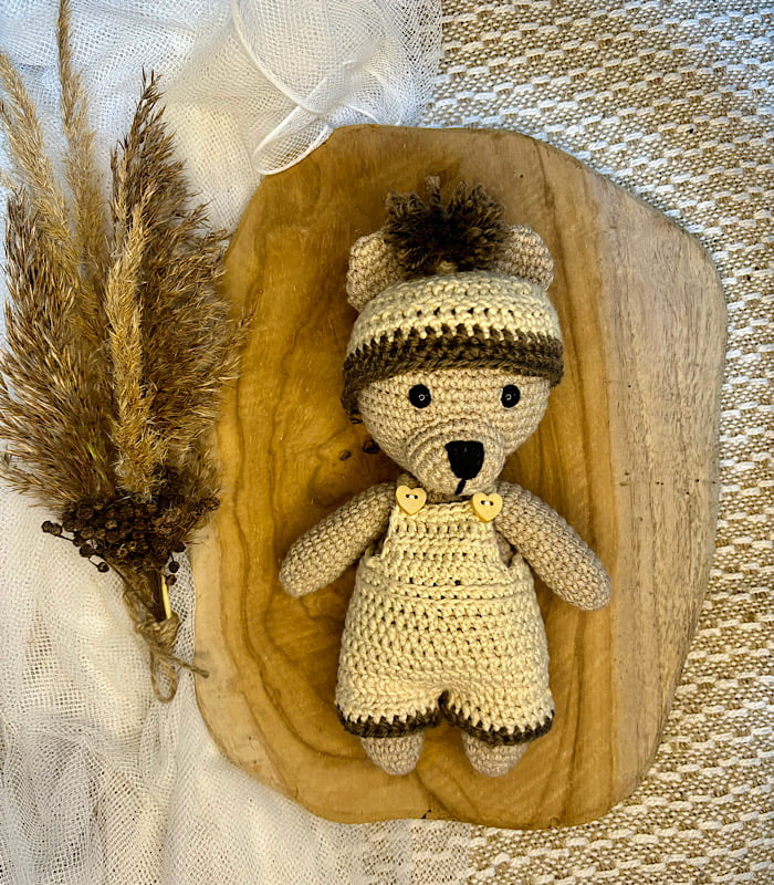 Szydełkowany miś wykonany własnoręcznie z najwyższej jakości materiałów.