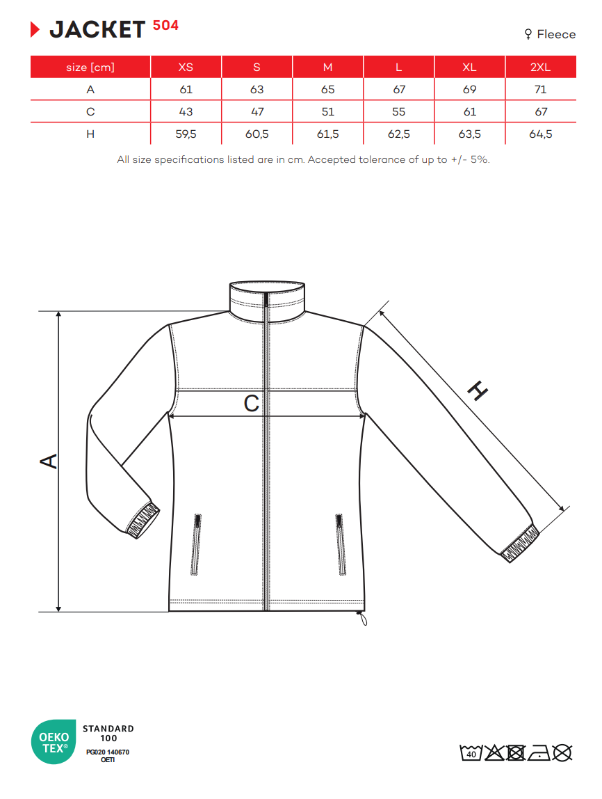 izolujący materiał, krój lekko taliowany, wewnętrzna część lamówki wzmocniona kolorową taśmą z materiału wierzchniego, kostkowy zamek błyskawiczny na całej długości, kieszenie z kostkowym zamkiem błyskawicznym, dolny brzeg regulowany za pomocą elastycznego ściągacza, rękawy z gumką, wykończenie antypillingowe po zewnętrznej stronie,