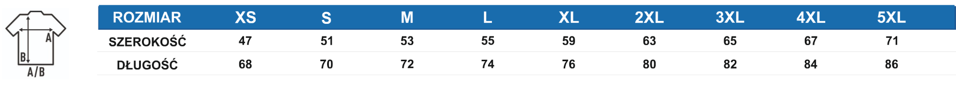 - Rozmiar 3XL dostępny w kolorach: WH, GM, BK, RB, RD, NY