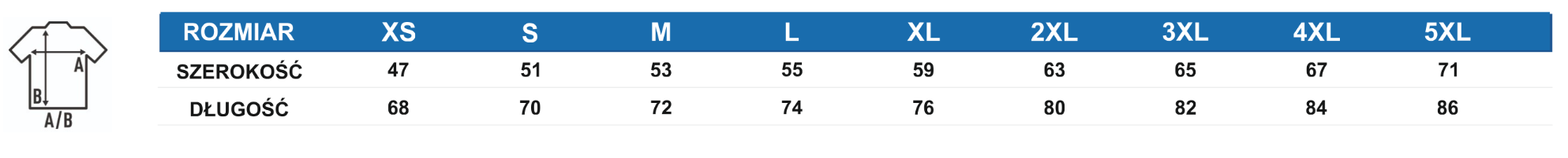 - Rozmiar XS dostępny w kolorach: WH, GM, BK, RB, RD, NY