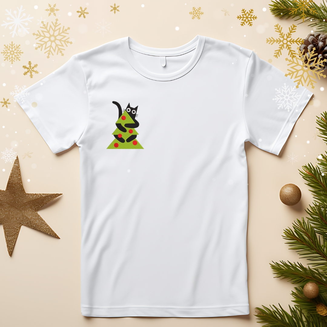 Świąteczna koszulka dziecięca T-shirt z motywem kota HAFT – Wygodna i stylowa na Święta!