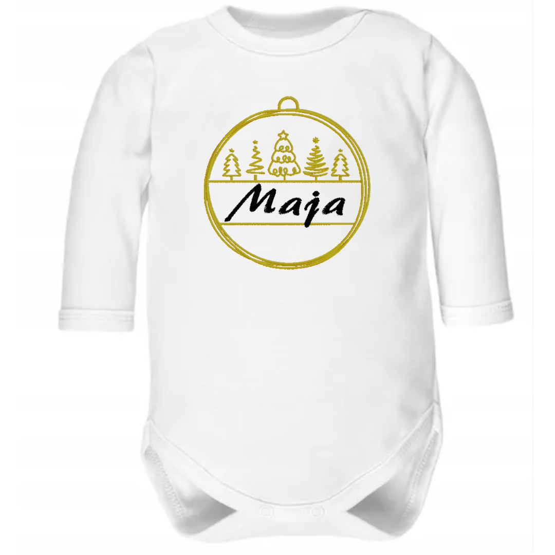 Szukasz idealnego ubranka dla swojego maluszka na Święta lub wyjątkowego prezentu dla niemowlaka? Świąteczne body z personalizowanym haftem to połączenie wysokiej jakości, estetyki i praktyczności. Uroczy haft z możliwością dodania imienia dziecka sprawi, że Twój maluszek będzie wyglądać wyjątkowo i czuć się komfortowo w świątecznej atmosferze.