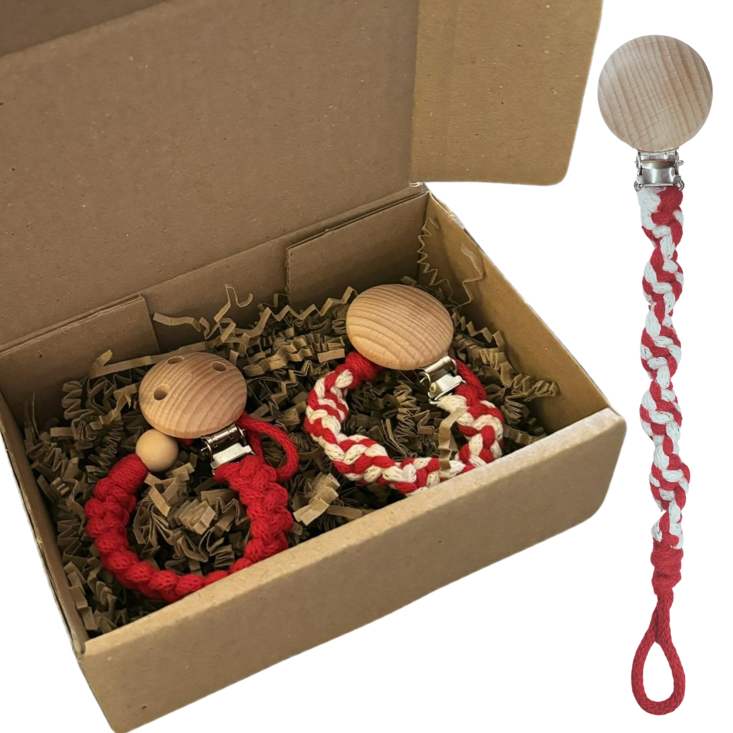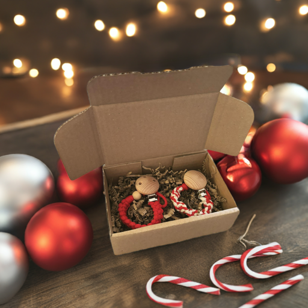 Podaruj swojemu maluszkowi praktyczny i wyjątkowy dodatek w świątecznym stylu! Te ręcznie plecione zawieszki do smoczka to idealny prezent na Mikołaja lub Boże Narodzenie.