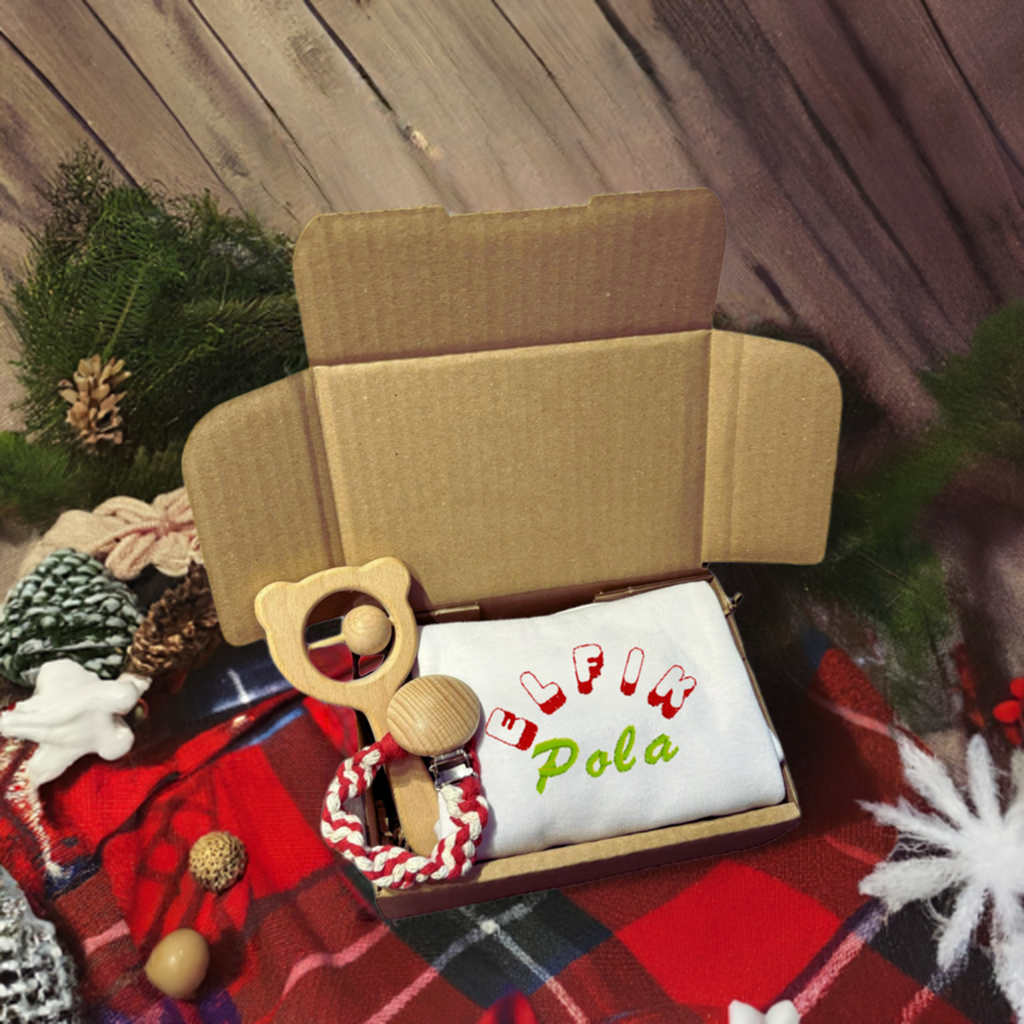 Oferujemy wyjątkowy świąteczny zestaw dla noworodka, który stanie się niezapomnianym prezentem na pierwsze święta. W skład zestawu wchodzi: