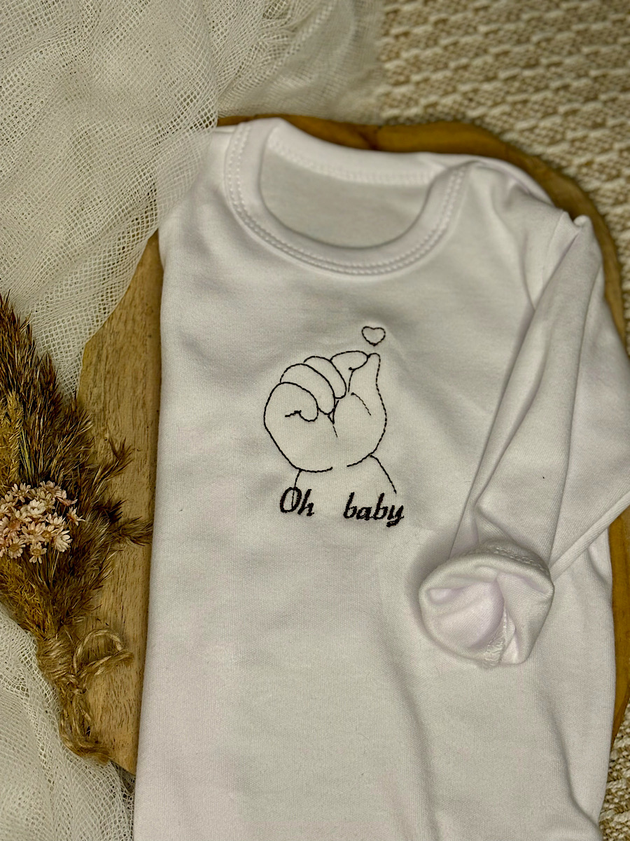 - Body niemowlęce z haftem — w kolorze białym, ozdobione subtelnym, delikatnym haftem. To elegancki i praktyczny element garderoby, który zapewnia wygodę i miękkość. Body niemowlęce jest polskiej produkcji, wykonane w 100% z bawełny.