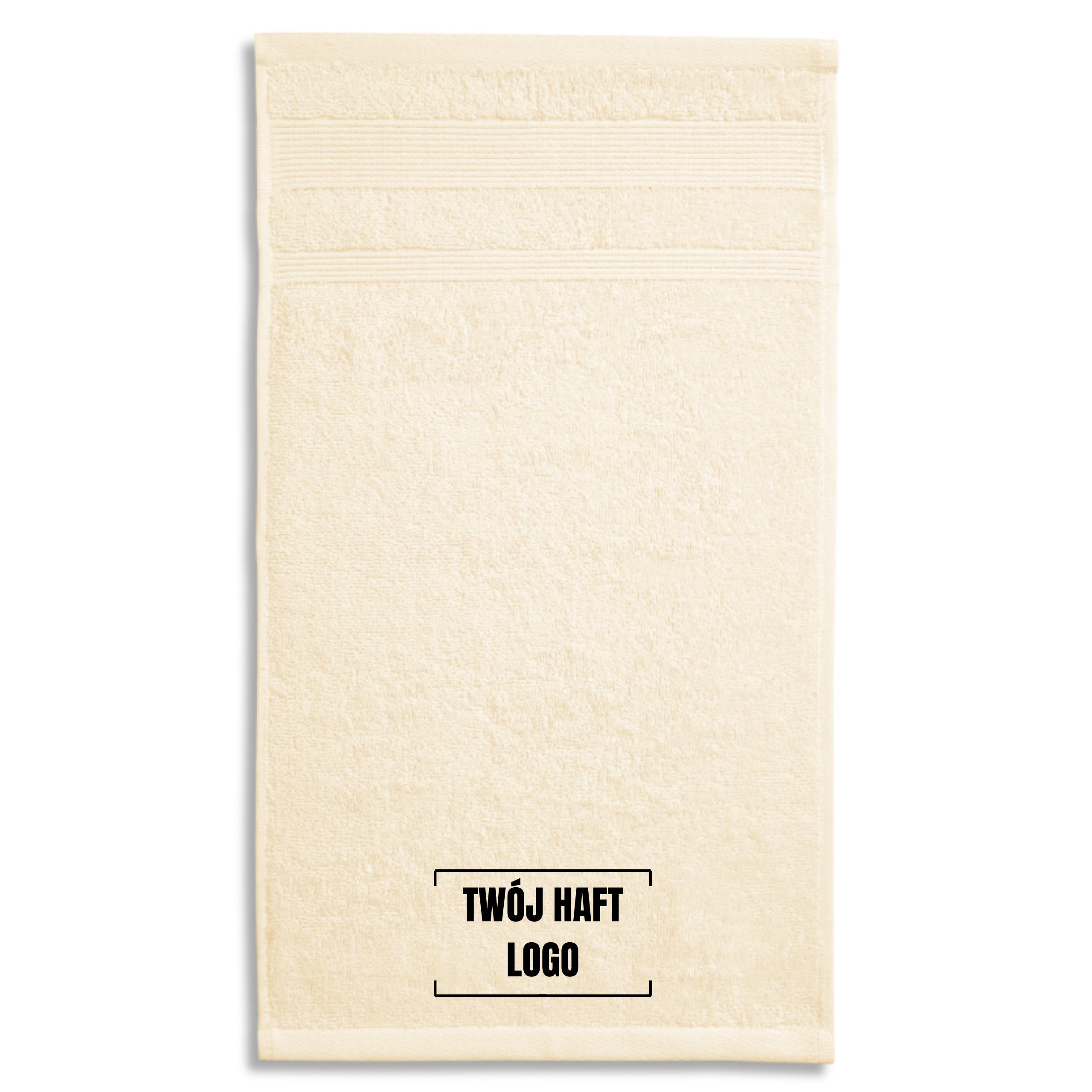 Ręcznik mały FROTTE BAWEŁNA ORGANICZNA GOTS 30×50 cm HAFT LOGO TEKST